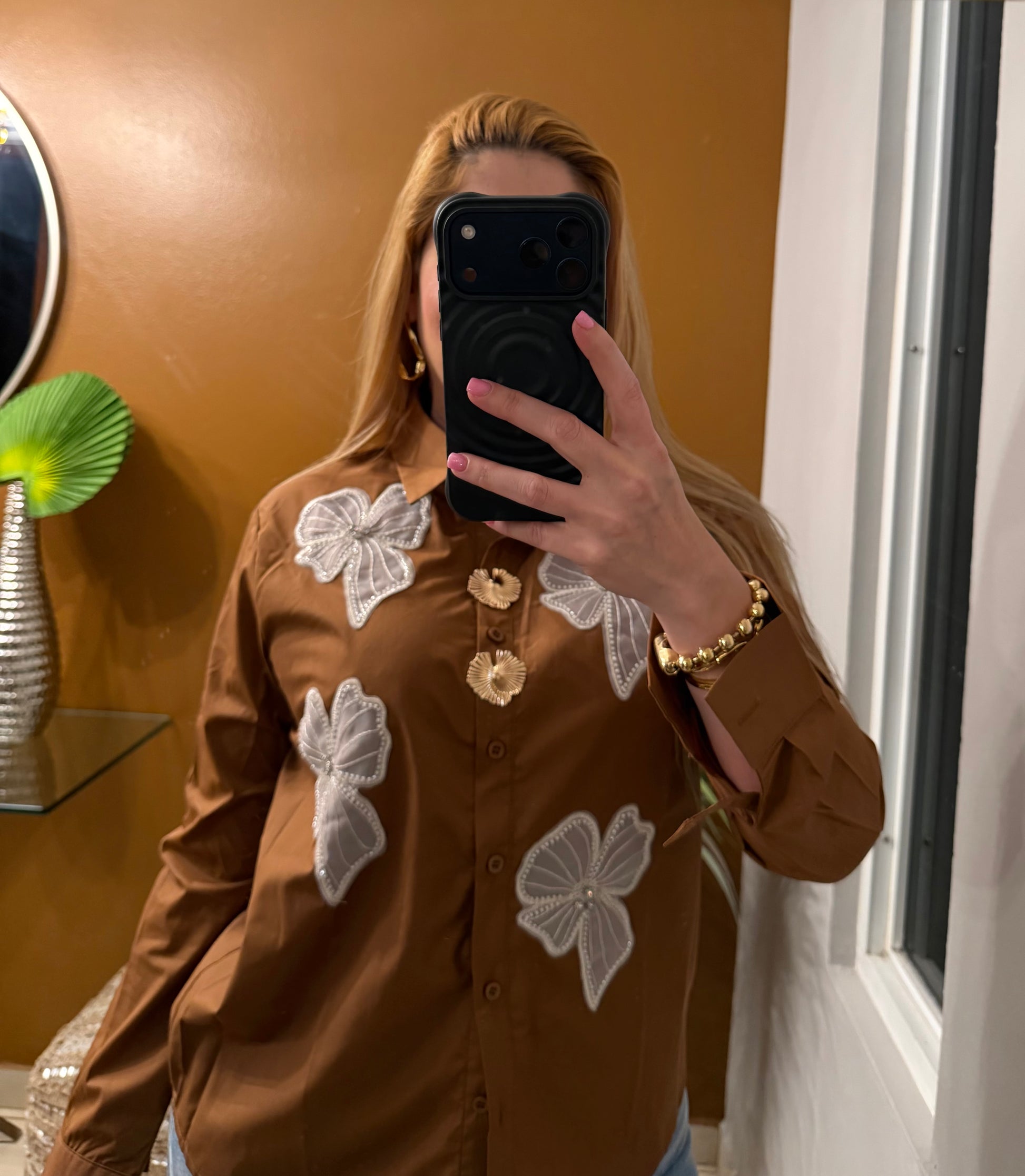 detalles en flores y hermosos botones dorados